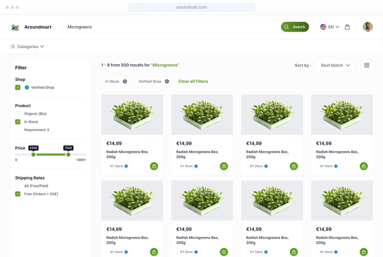 Sell your Products to thousands of people, through your own Shop or Market Place.